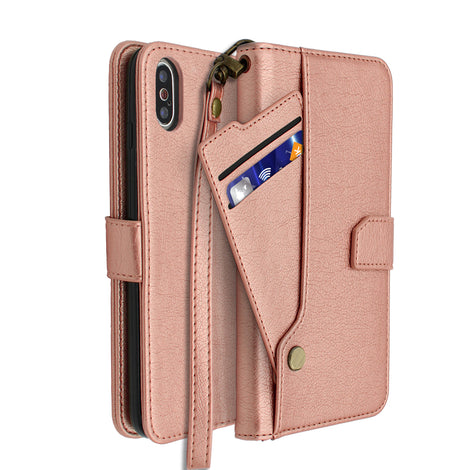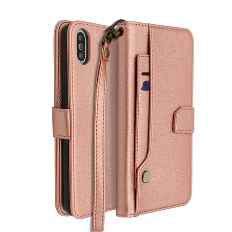 Rose Gold Portafoglio Pelle Case for iPhone XS Max